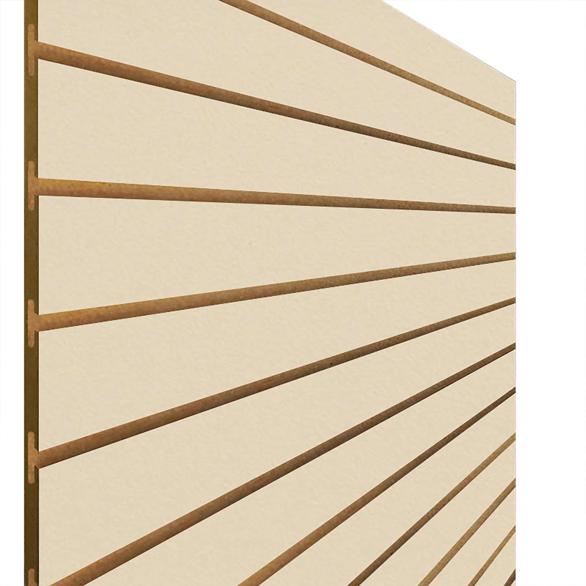 These Cream slatwall panels are manufactured from 18mm melamine-faced MDF and precision-routed to standard slatwall spacing, ensuring full compatibility with slatwall hooks, brackets and shelving systems.
