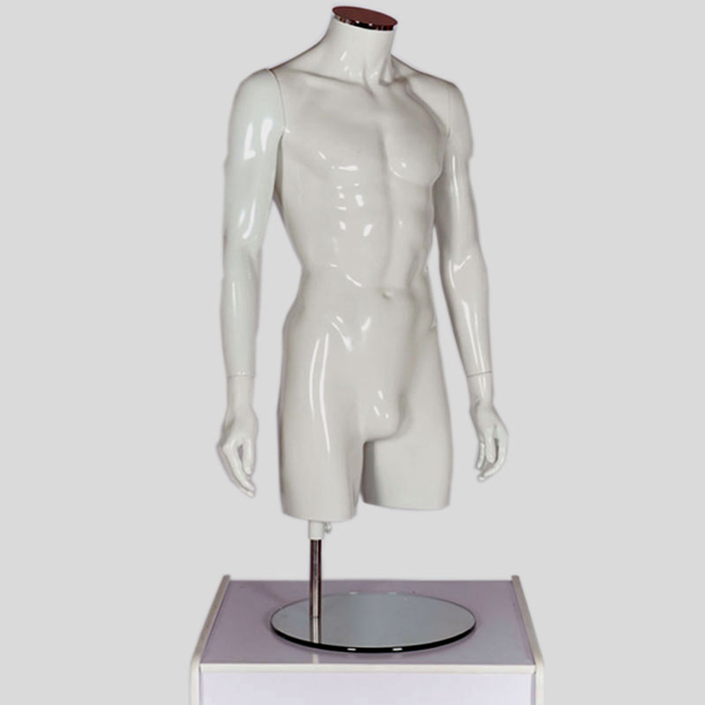 This popular 3/4 Male Headless Torso Mannequin with arms comes in a gloss white finish. Perfect for modelling t-shirts and tops.